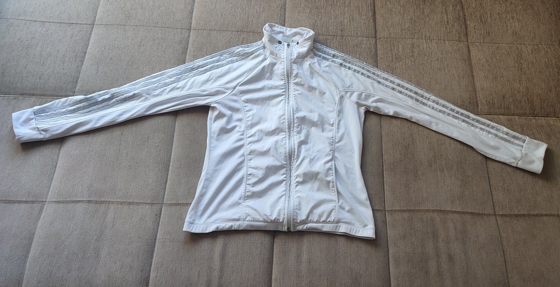 Orjinal Adidas Climalite esnek kadın spor çeketi 38 beden yırtık delik yoktur ön taraf fermuardan ceplere kadar olan yerler çift katlıdır ölçüleri ve etiketleri resimlerde mevcut ölçerek alım yapınız iade yoktur çizgileri gri renktir