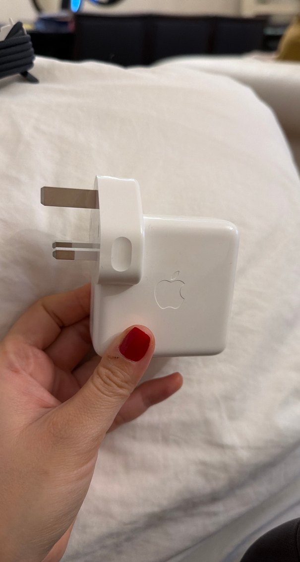 Üçlü prizli beyaz Apple telefon şarj adaptörü, verimli şarj sağlar. Kompakt ve taşınabilir. ⚡