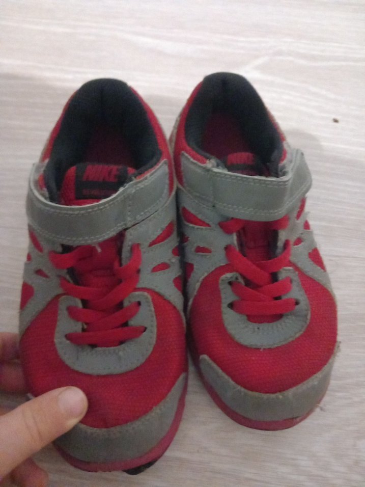 erkek çocuklar için kırmızı ve gri renklerde, cırtlı kapama ve kauçuk tabanlı spor ayakkabı. Casual sokak stili için uygun orjinal nike markadı .