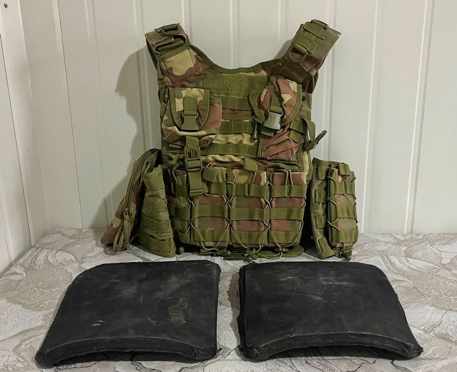Balistik plakalı yelek şarjör cepleri vardır yanında ufak çantası vardır plakalar ağırdır orijinal MSB balistik plakadır.