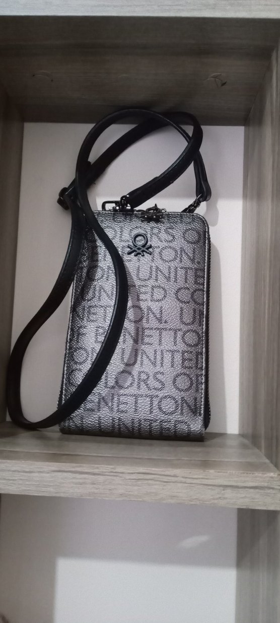 Gri metalik baskılı, fermuarlı ve sentetik kumaştan yapılmış kadın cüzdan çanta. Trend sokak tarzı ve ayarlanabilir askıya sahip.İçine sadece kartlık ve telefon sığar,kartlık dahil değildir, fermuarında renk değişimi olmuş,orjinal ürün.