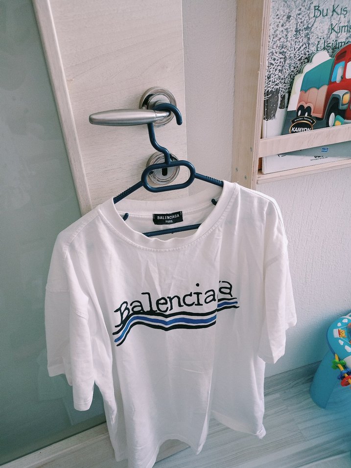 orjinal balencia üründür Beyaz pamuk kumaştan, kısa kollu ve rahat kesimli unisex Önünde Balencias baskısı bulunur, günlük sokak stili için uygundur.