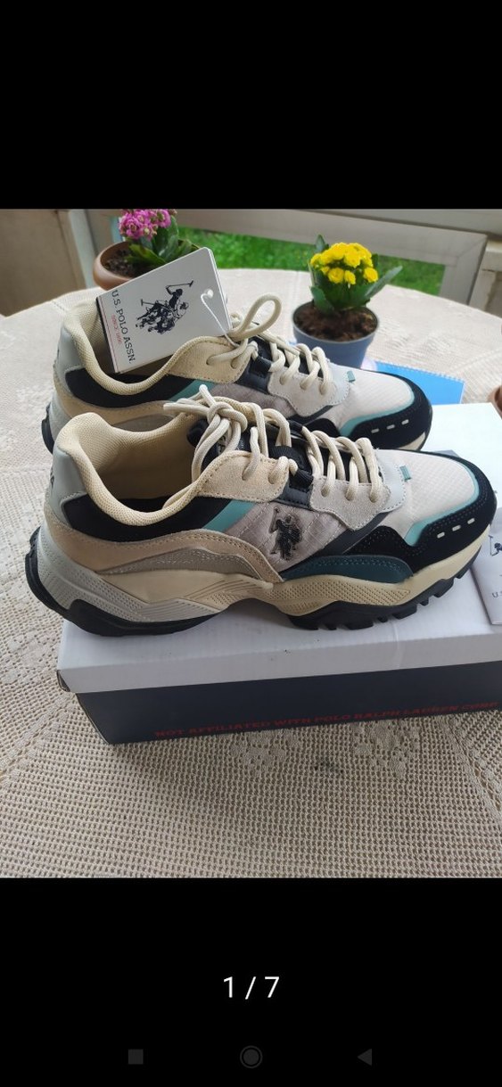 Orjinal polo çok renkli baskılı ve bağcıklı kadın spor ayakkabısı. Kauçuk tabanlı, sokak stili ve spor rahatlığını bir arada sunar.