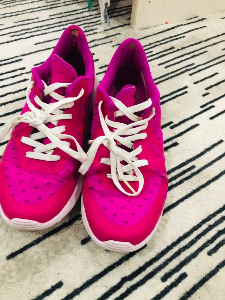Renkli batik desenli, bağcıklı pembe kadın spor ayakkabısı. Kauçuk tabanlı, sportif ve şık günlük sokak stili için uygun.