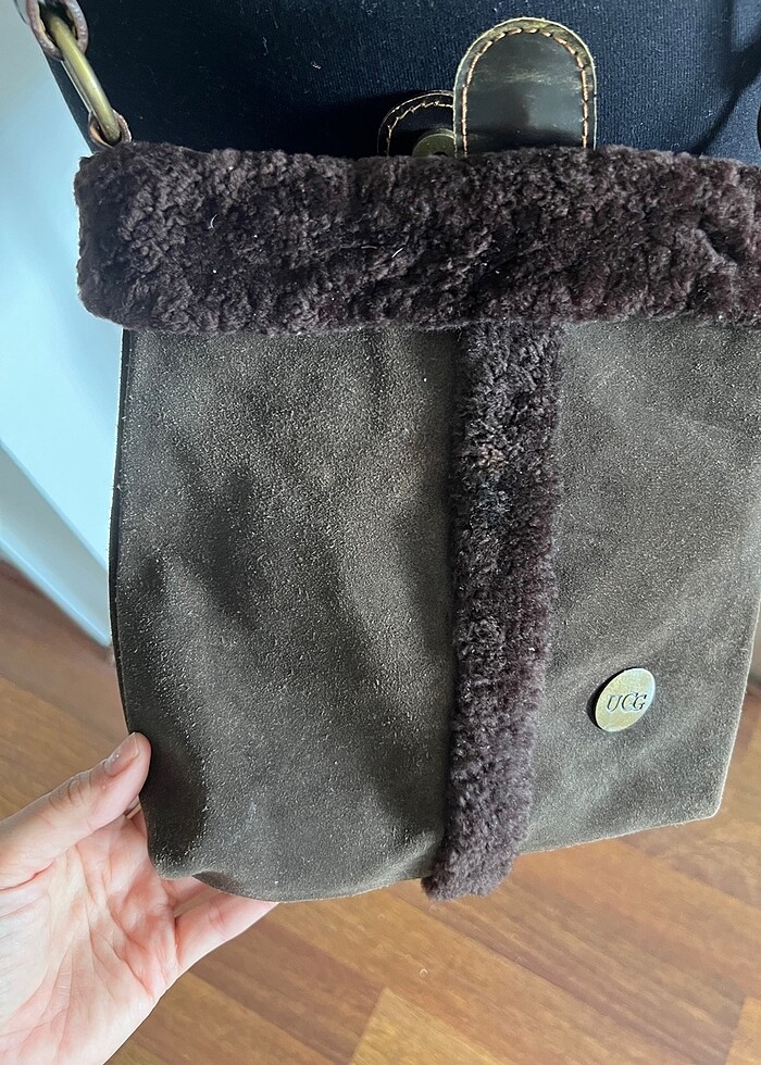 Kürklü ugg marka çanta kullanılabilir kahverengi süet dokulu gerçek deri