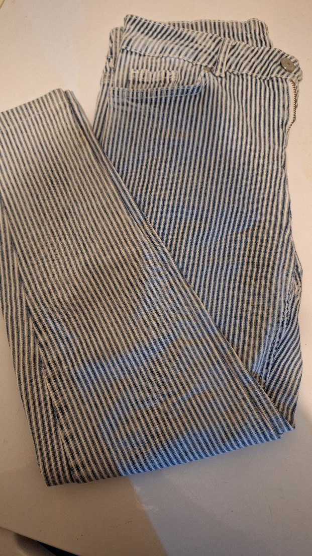 Kadınlar için gri çizgili denim pantolon, pilili ve midi boyda, normal kesimle günlük kullanıma uygun 36 beden