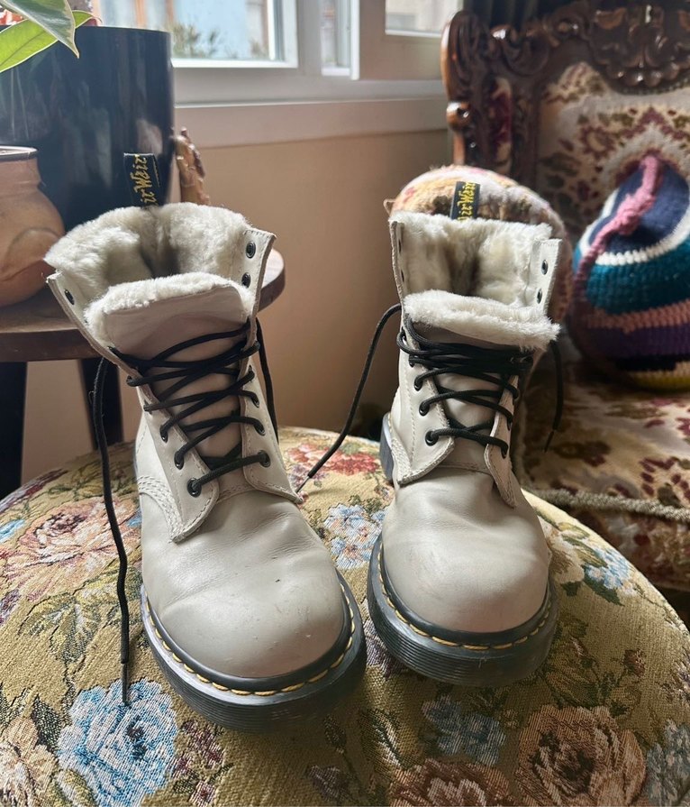 Orjinal Dr. martens Beyaz Tüylü Kadın Bot