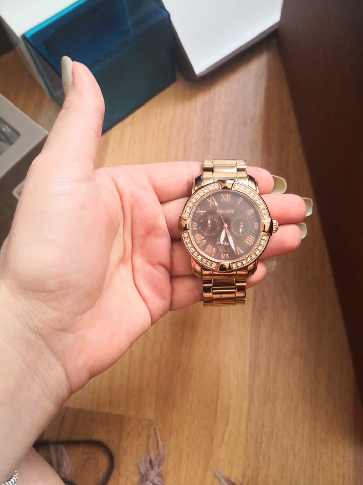 Bronz gold, bakır renkli, taşlı. Orjinal escape kadın saat ⌚