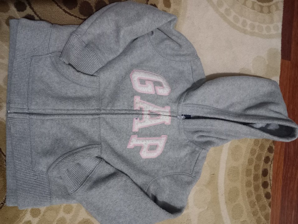 Uzun kollu, kapüşonlu ve fermuarlı kız çocuk sweatshirtü. Yumuşak ve sıcak kumaştan,orta kalın polardır.Orjinal GAP markasıdır.3-5 yaş arasına uygundur.Tek8z kuklanildi,hiçbir yerinde sıkıntısı yok.