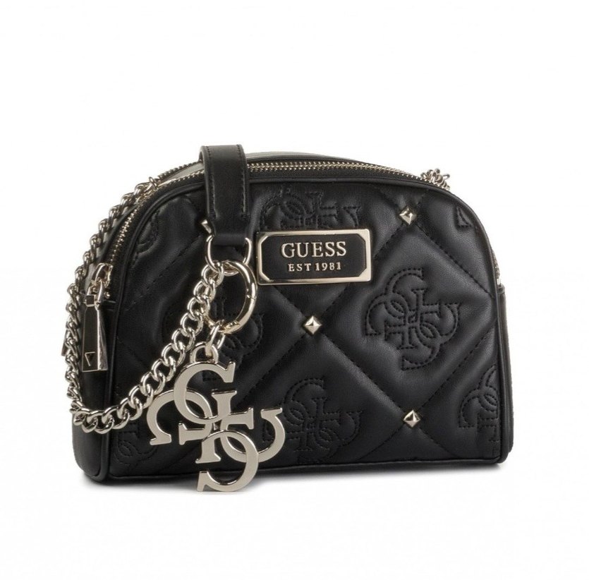Orjinal siyah deri kadının çantası, kemerli tasarımı, nakış desenleri ve parlak metal detaylarıyla dikkat çeker. GUESS logosu ve zincirli aksesuarlariyla çok zarif ve güzel bir çanta. Sayılı kullanıldı, temiz ve defosuzdur.