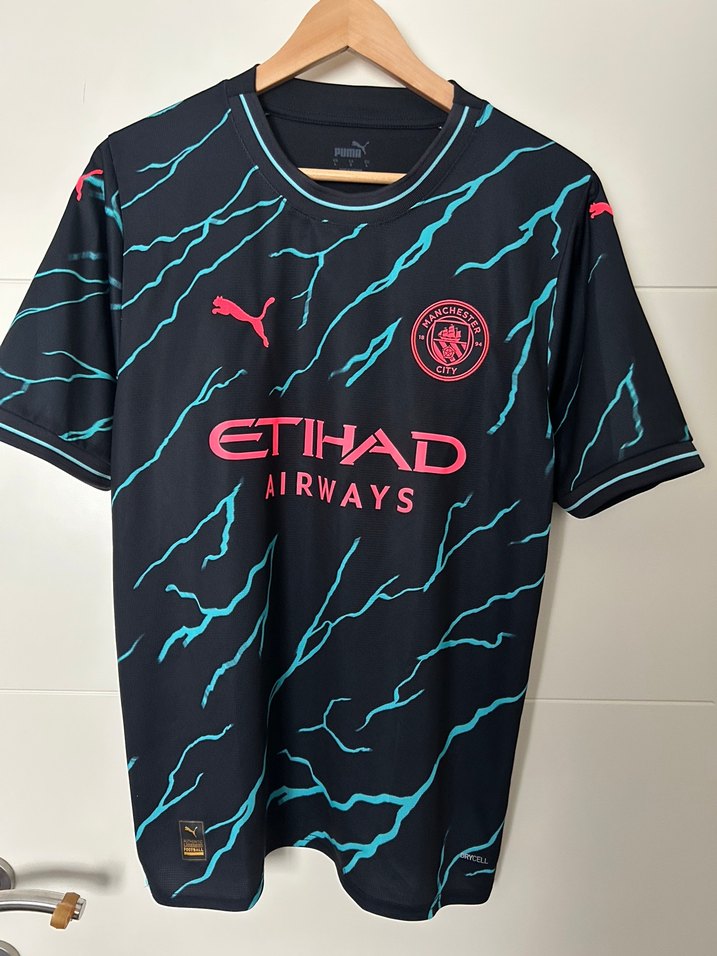 Orijinal. Erling Haaland baskılı Manchester City forması. 2023/24 deplasman forması. Bulunması zor bir forma. L beden. Şimşek desenli. Sıfırdan farksız. Hiçbir defosu yok.