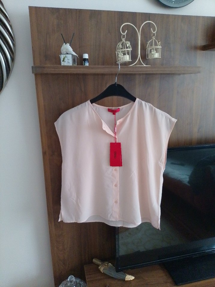 Hugo Boss ipek bluz pudra rengi kalıbı dar değil iki kol arası 52 cm o yüzden 36 bedeni işaretledim.