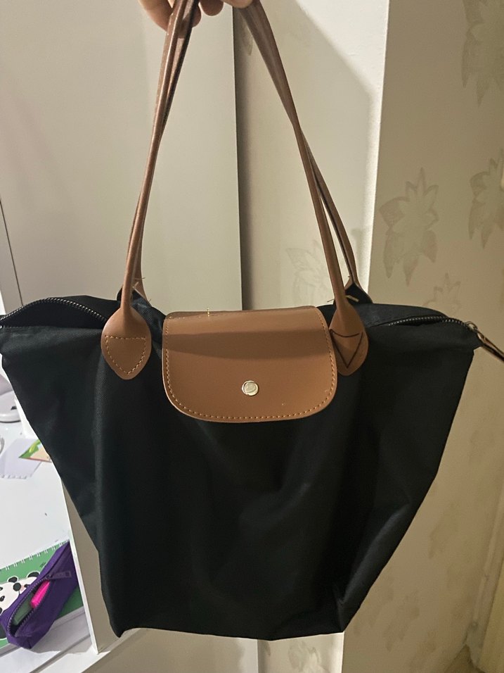 Kahverengi deri saplı, fermuarlı kadın çantası, günlük sokak stiline uygun koyu renk tasarıma sahip. Katlanabilir Orjinal Çanta