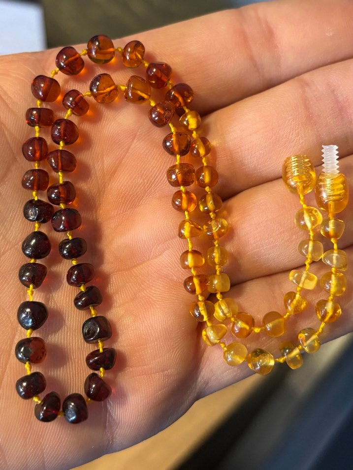 Orjinal Damla Kehribardır. Sağlık açısından birçok faydası bulunmaktadır. Bebeklerde diş çıkarma döneminde ateşi ve ağrıları indirmeye yardımcı olduğu bilinmekte. Yetişkinlerde solunum yolu ve guatr hastalıklarına birçok faydası olduğu bilinmekte. Uzunluk: 41