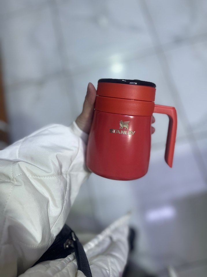 Renkli kırmızı Stanley termosta taşıma için sap bulunur ve içecekleri sıcak tutar. Dayanıklı tasarımıyla çocuklar için uygundur. ☕ Özellikle bebekli ve çocuklu annelerin tercihi olup içine çorba koyulabilir. Renkleri mevcuttur