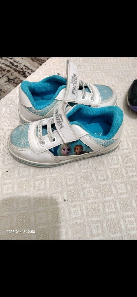 Mavi renkli, baskılı Frozen karakterli kız çocuk spor ayakkabısı, cırt cırtlı ve kauçuk tabanlıdır. #kızçoçukbot #çoçukbot #bot #ayakkabı #sporayakkabı #ayakkabı #mont #hırka #kapişonlu #çanta #barbie #bezbebek #toka #taç