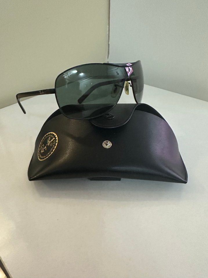 Koyu renk camları ve şık çerçevesiyle klasik siyah Ray-Ban güneş gözlüğü, siyah deri kılıfla birlikte gelir. ️