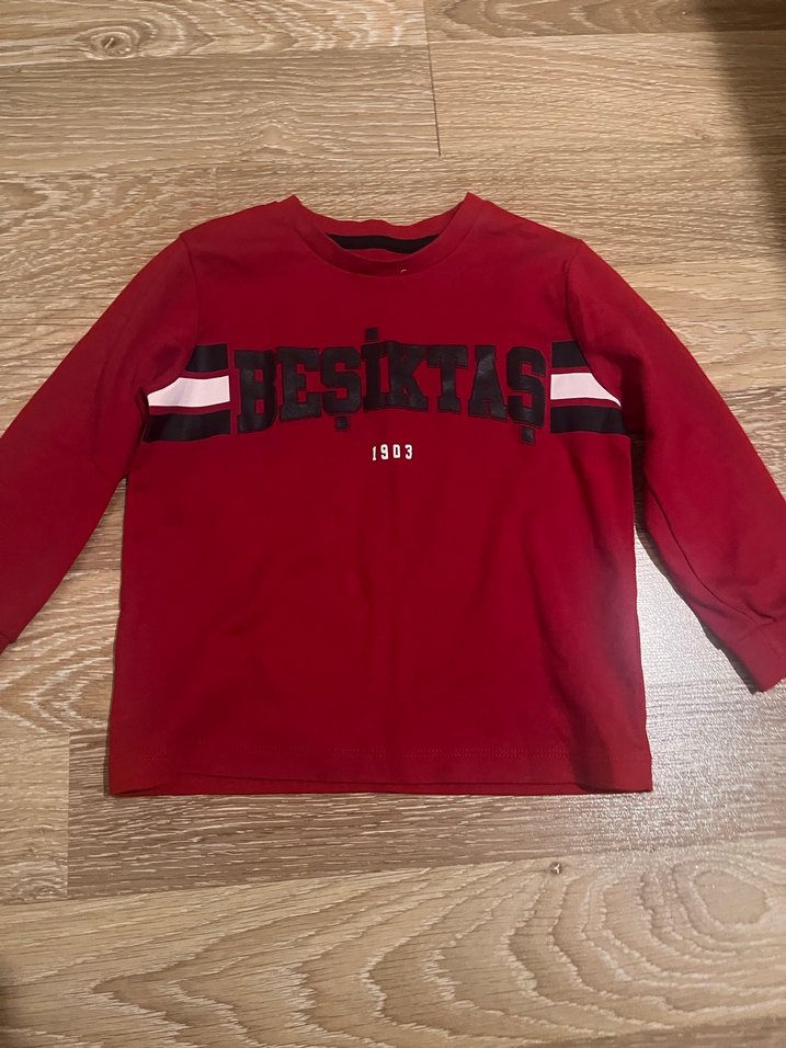 Koyu kırmızı renkli, uzun kollu ve bisiklet yaka erkek çocuk sweatshirtü. Beşiktaş baskılı, örme detaylı ve yumuşak polar kumaştan, bol kesim rahatlık sağlar.