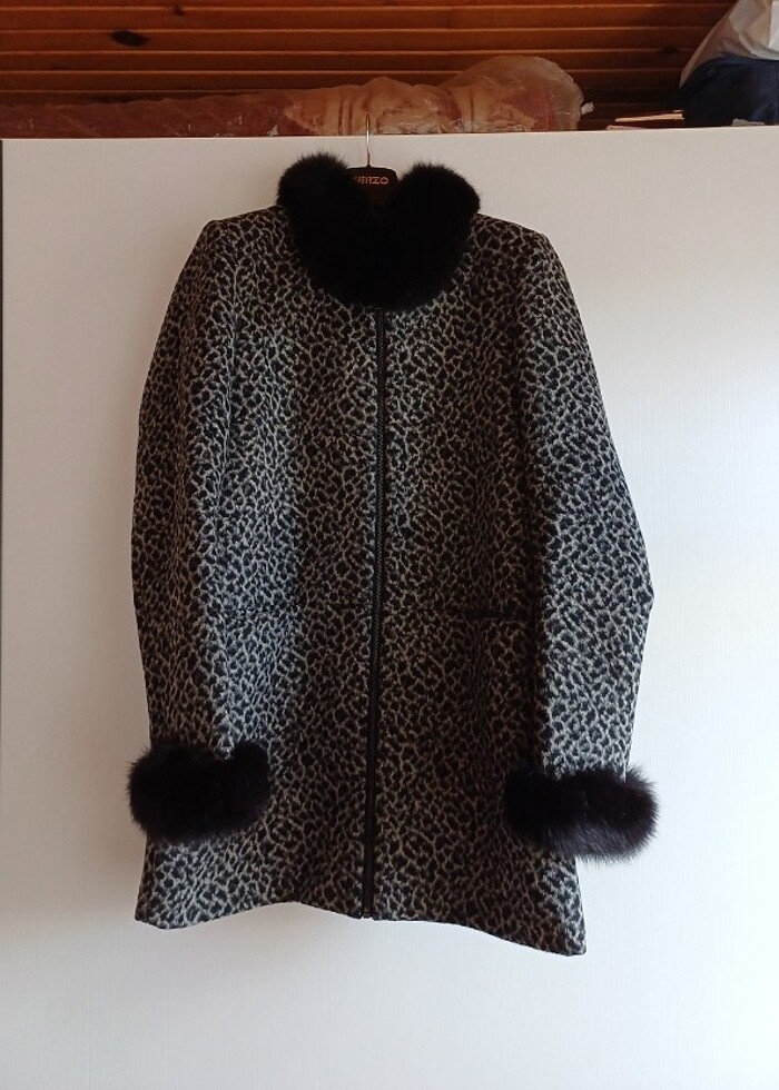 Kaşe Leopar Kaban Yaka ve kol ağzı orjinal kürk tür.. özel olarak tercih ettim dikildi istenildiğinde çıkabilir..kolaltindan55cm boy 90cm