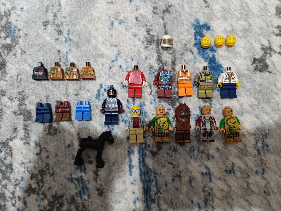 Çeşitli temalara ait farklı renklerde Lego figür parçaları ve gövde parçaları vardır bazılarında hasar ve silinmislikler vardır az çok (iade yoktur)(motorcu kaskinin altındaki mavi kapalı kırmızılı parça satılmıştır bilginiz olsun )