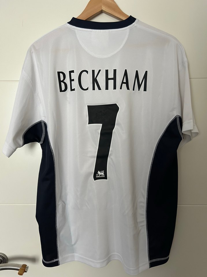 Manchester United. Orijinal. Çok az giyildi. Türkiye’de tek ve dünyada da hiçbir ikinci el plat formunda satışı yok. 2000/01 sezonunun forması. David Beckham baskılı. Umbro marka. Beyaz lacivert. Kondisyonu çok iyi. Sıfır gibi. Hiçbir defosu yok. Bulunması çok zor mükemmel bir forma. Eni 56cm, Boyu 73cm. Diğer ilanlarıma da bakmanızı öneririm.