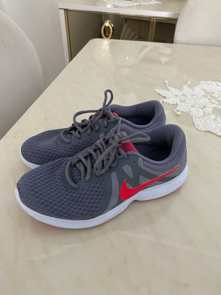 Nefes alabilen file üst yüzey ve esnek kauçuk tabanlı gri Nike spor kadın sneaker, elastik bağcıklarla rahat ve güvenli kullanım sağlar.çok az giyildi orjinaldir sökük yırtık vs yoktur
