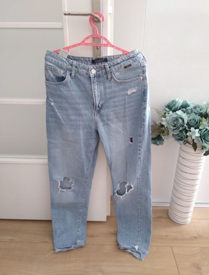 Sadece birkaç kez giyildi yenidir, orjinal yırtık detaylı yüksek bel mom jean