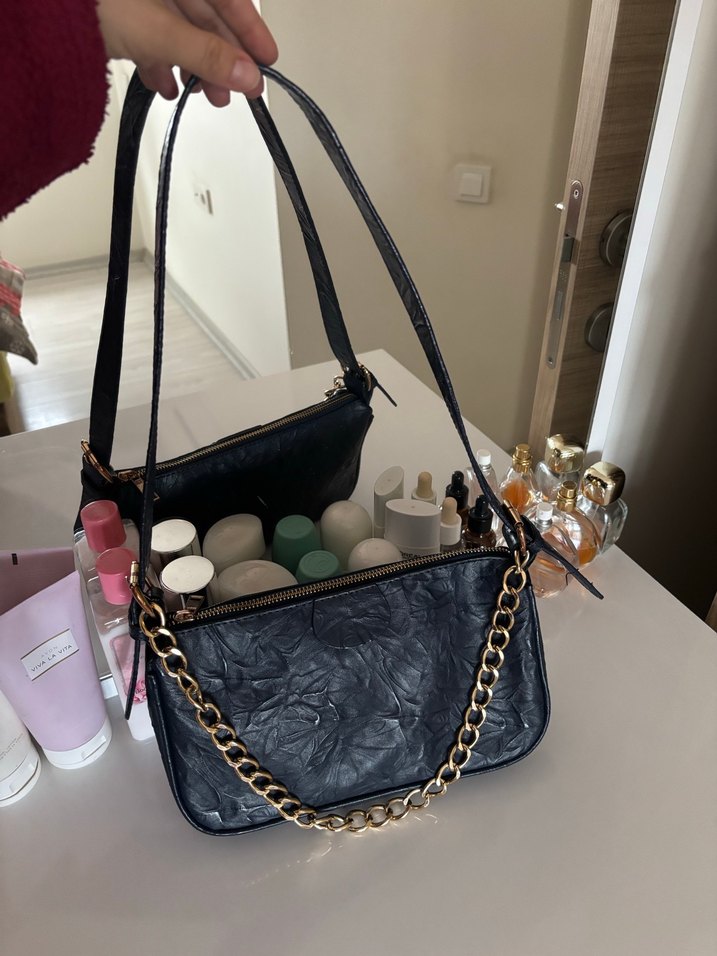 Zincir detaylı, desensiz siyah deri kadın çantasıdır. Bohem tarzıyla günlük ve şık kullanıma uygundur. hediye geldi bir kaç kez kullanıldı ihtiyaç fazlasıdır