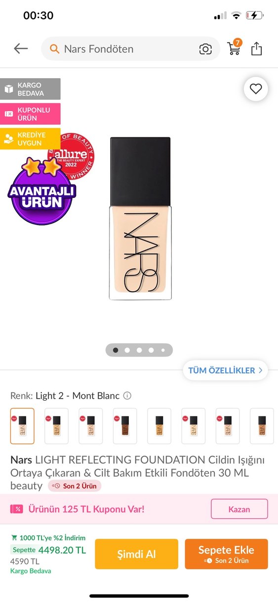 Nars Light Reflecting Foundation, 30 ML, Light 2 Mont Blanc tonu. Cildin ışığını ortaya çıkaran ve bakım etkili fondöten. Bej tonunda doğal bir görünüm sağlar. PAZARLİK PAYİ VARDİR