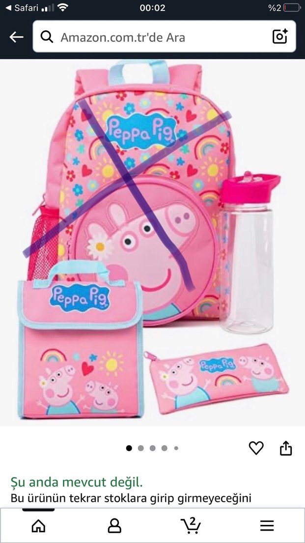 Peppa Pig okul çantası seti; , beslenme çantası, kalemlik ve şeffaf su şişesi içerir. Çanta hariçtir.İngiltere NEXT Mağazası'ndan alındı.