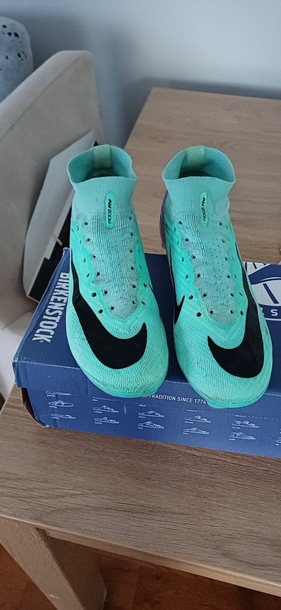 Orjinal Nike Air Zoom Turkuaz renkli halı, velcro bantlı, Çoraplı ve kauçuk tabanlı erkek futbol, halı saha ayakkabısı. Spor ve sokak stili için uygun, koyu canlı renkte, desensiz tasarım. ⚽ Tek kusuru bağciğı yok ama biz bu sekilde kullandik, çoraplı olduğu için ayaktan çıkmiyor.Ürün hâlâ revaçta ve mağazasında satişta son fotoda magaza satiş fitatini da ekledim bakabilirsiniz.
