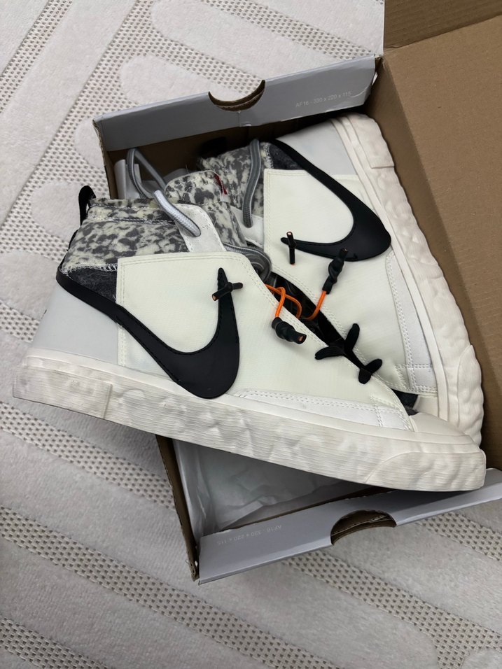 Beyaz taban üzerine gri desenli detaylar ve büyük siyah logo bulunan, cırt cırtlı bağcıklı erkek spor ayakkabısı. Outdoor ve sokak stiline uygun, kauçuk tabanlı.