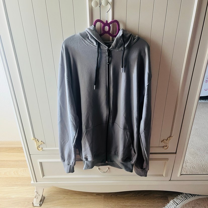 Gri fermuarlı, uzun kollu ve normal kesim erkek ceket. XXL beden