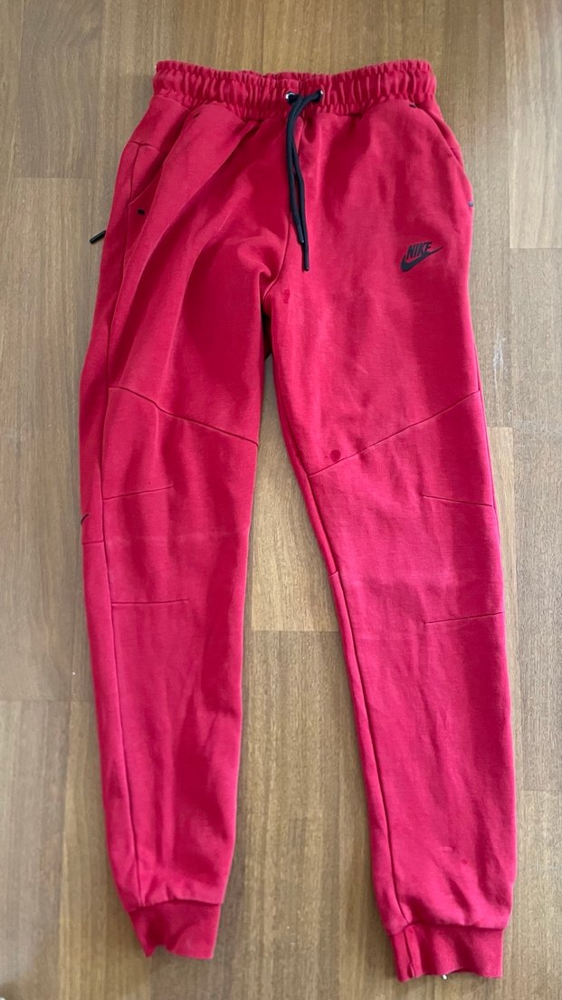 Nike kırmızı eşofman altı, lastikli bel ve bağcık detaylıdır. Yan cepleri ve dar kesimiyle rahat bir kullanım sağlar.