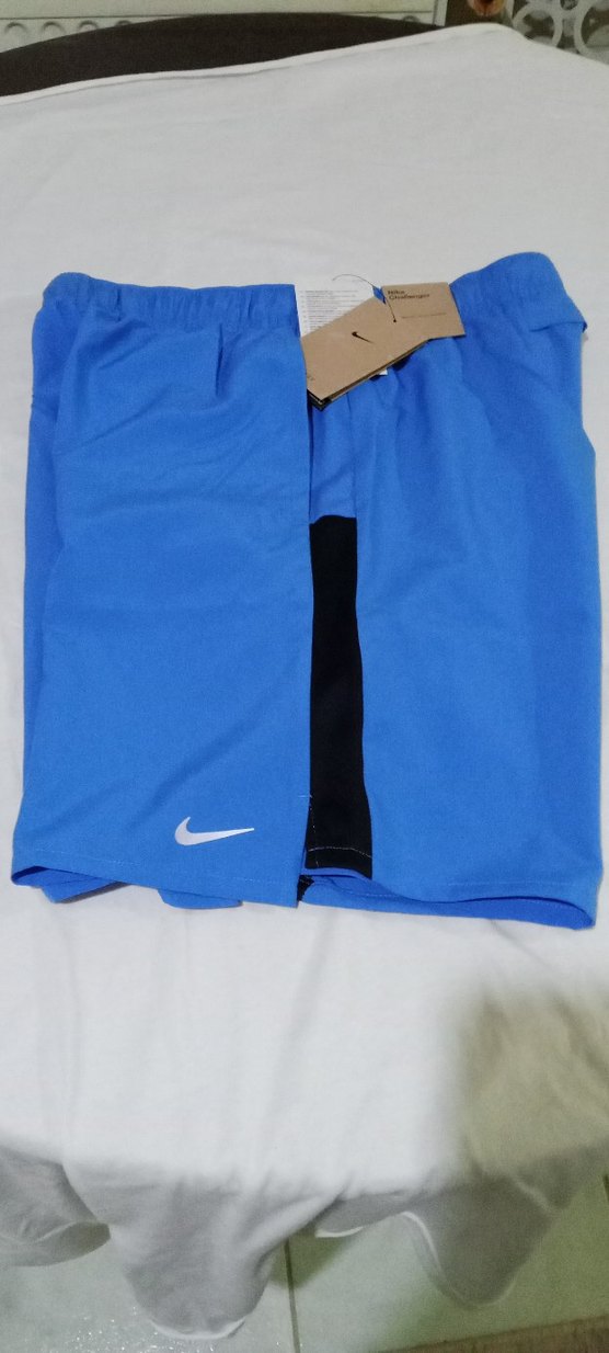 Nike markalı, mavi renkte, XL beden Kids Enfant Şort ürünü. Sürdürülebilirlik bilgileri ve barkod içerir. S beden yetişkin birinede olur.Etiketi üzerinde sıfır Şort Arkasında gizli cep olan ve yanlarında cepli