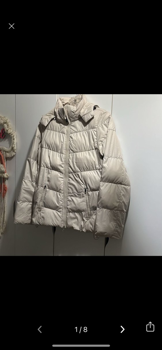 Gri renk, yüksek yakalı ve uzun kollu bu dar kesim mont, fermuarlı ön ve ceplere sahiptir. Yumuşak sentetik kumaştan üretilmiş, dış mekan için rahat ve sıcak tutar.