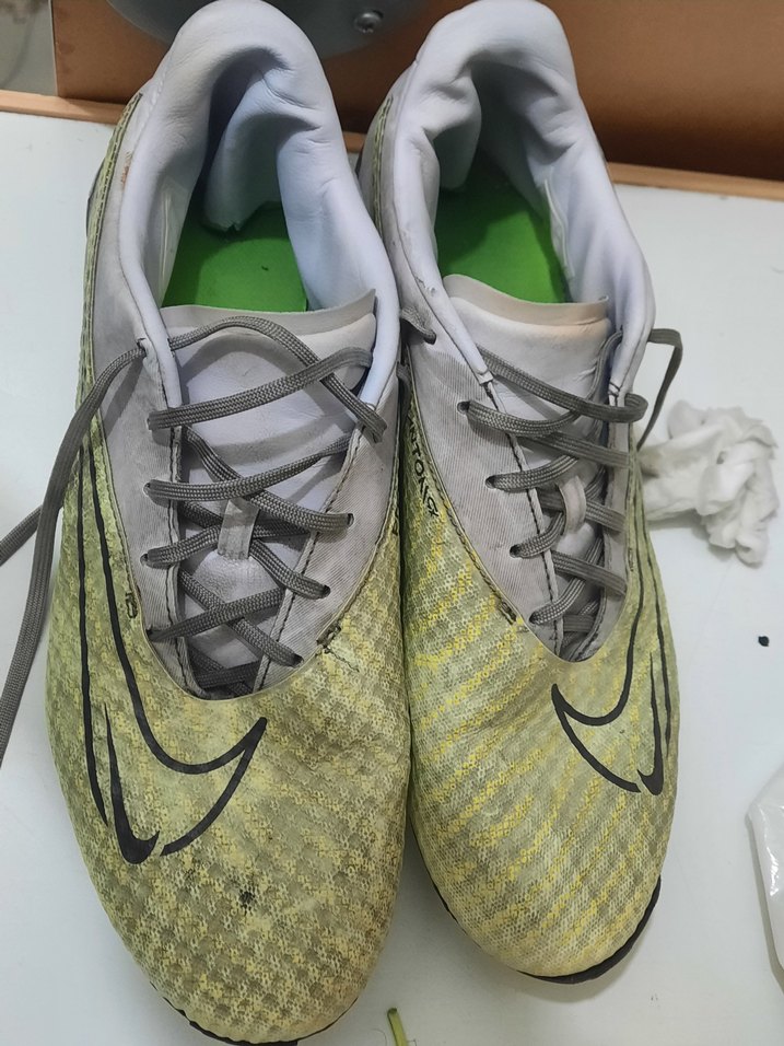 Gri renkli, kauçuk tabanlı erkek futbol ayakkabısı, Velcro detaylıdır ve sokak modasına uygundur. Spor için idealdir. ⚽ kramponun sıkıntılı olan yerlerini çektim