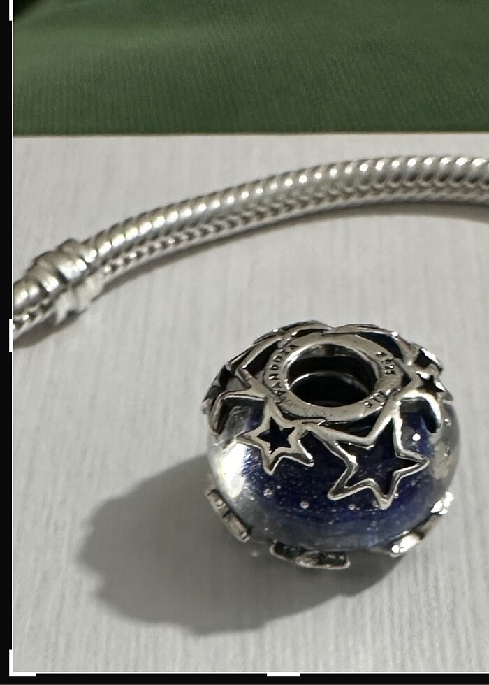 galaksi mavisi ve yıldız murano charm. Orjinal. Sertifika ve faturası mevcut. 2024 eylülde alındı