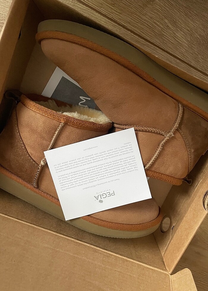 Bir kış boyu kullanıldı. Orjinaldir marka parktan alındı.İçi hakiki koyun yünüdür. Benzer ugg olduğu için satışta. Marka park tan alındı.