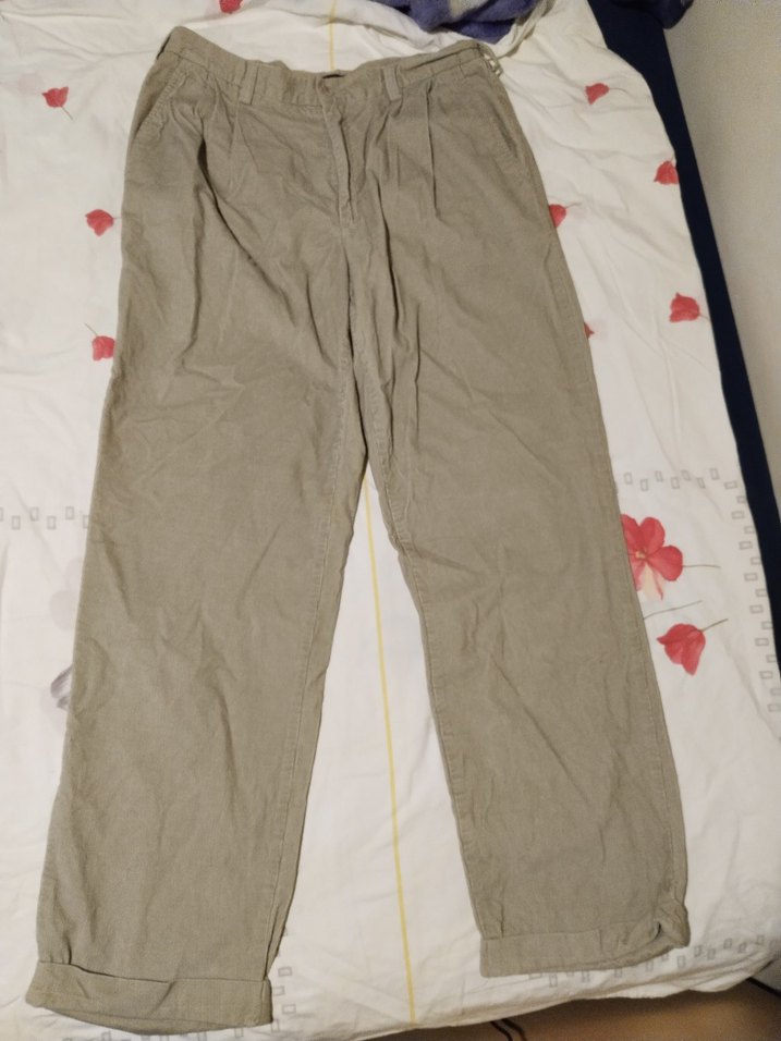 Ürün %100 orijinaldir. Beden 34-34. PERRY ELLİS KADİFE PANTOLON KUM RENGİ 34-34 REGULAR FİT %100 PAMUK BOY 111 EN (BEL) 44 CM PAÇA GENİŞLİĞİ 22,5 CM