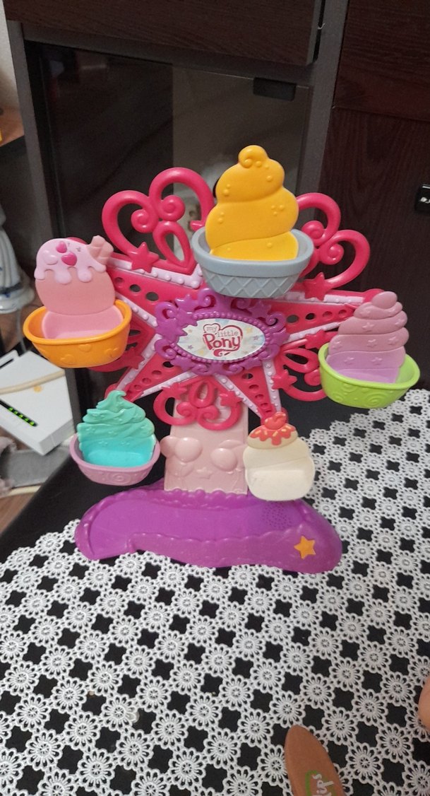 Pastel pembe renkte, üzerinde renkli pastel dondurma figürleri bulunan atlı karınca tasarımlı oyuncak. Mor taban üzerinde detaylar içerir. pillidir müzik çalıp dönüyor bir oyuncağın sadece tabagi kayıp başka hiçbir kusuru yoktur
