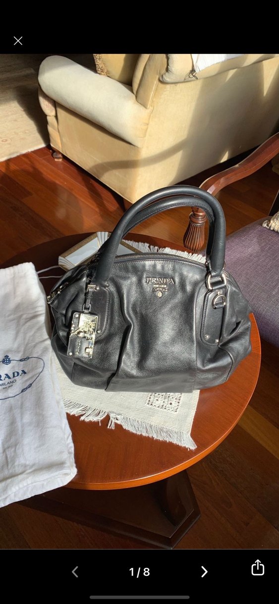 Klasik şıklık ve sokak modasını birleştiren, tokalı detaylara sahip siyah deri Prada kadın çantası, günlük kullanım için uygundur. Klasik ve şık bir yatırım parçası olan orijinal Prada markasına ait, siyah renkli, yumuşak Vitello Daino (pütürlü deri) malzemeden üretilmiş bir el çantasını satıyorum. Çanta, üzerinde ikonik gümüş tonlu asma kilit detayı ve kabartmalı 'PRADA MILANO' logosu ile öne çıkmaktadır. Yuvarlak hatlı, geniş iç hacimli bu model, günlük ve özel kullanıma uygundur. Çok iyi durumda olan çanta, derideki dogal kullanımdan kaynaklı kıvrımlar dışında büyük bir aşınma veya yırtık içermemektedir ve orijinal toz torbası (dust bag) ile birlikte verilecektir. %100 deri Orjinal Prada