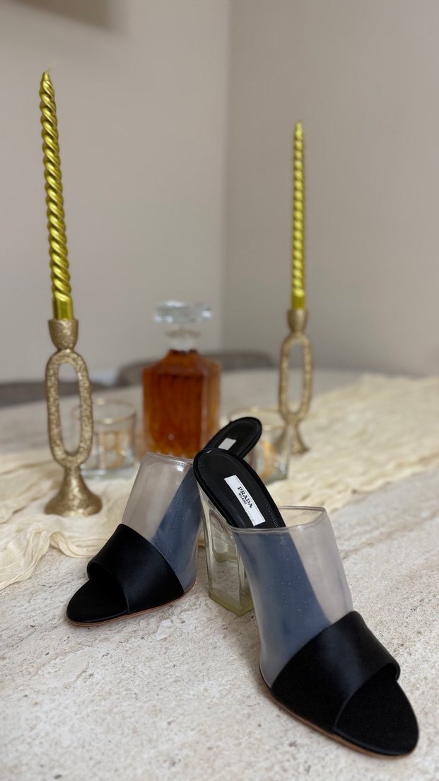 Orjinal Prada Siyah Şeffaf Bantlı Kadın Terlik