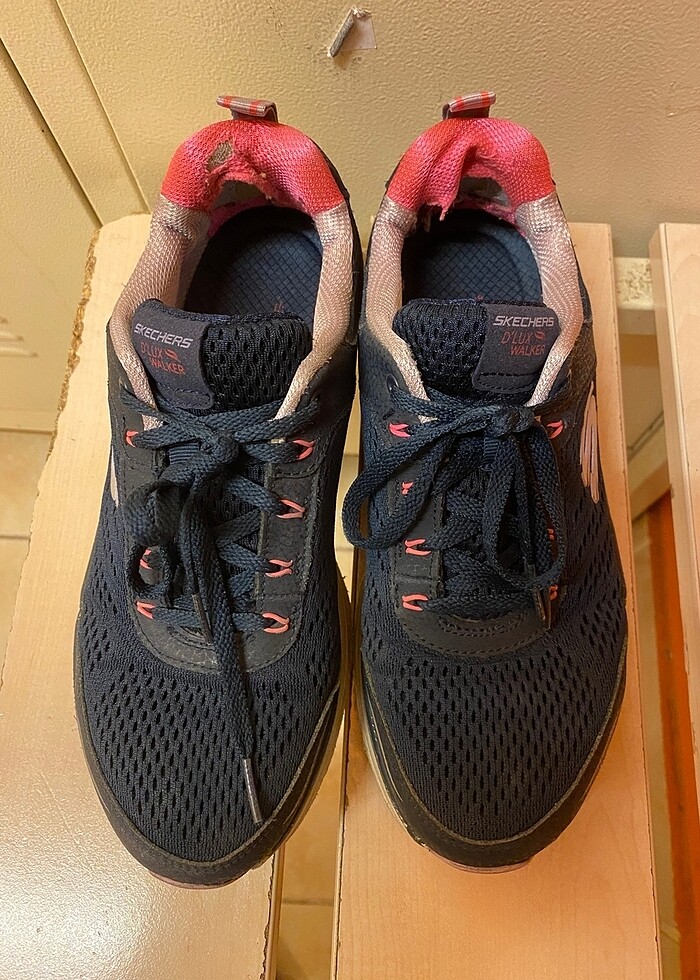 Arka topuk kısım zedelenme var onun dışında göründüğü gibi.rahat bir ayakkabı Koyu lacivert siyah arası renk