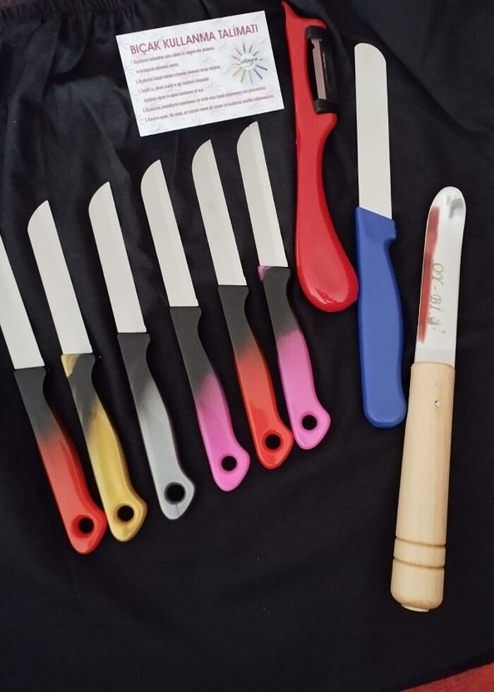 6 bıçak oyacak soyacak mikro tırtıklı bıçak renkler fotoğraftaki gibi değildir istediğiniz tek bir renk olacaktır ebruli modeller icin