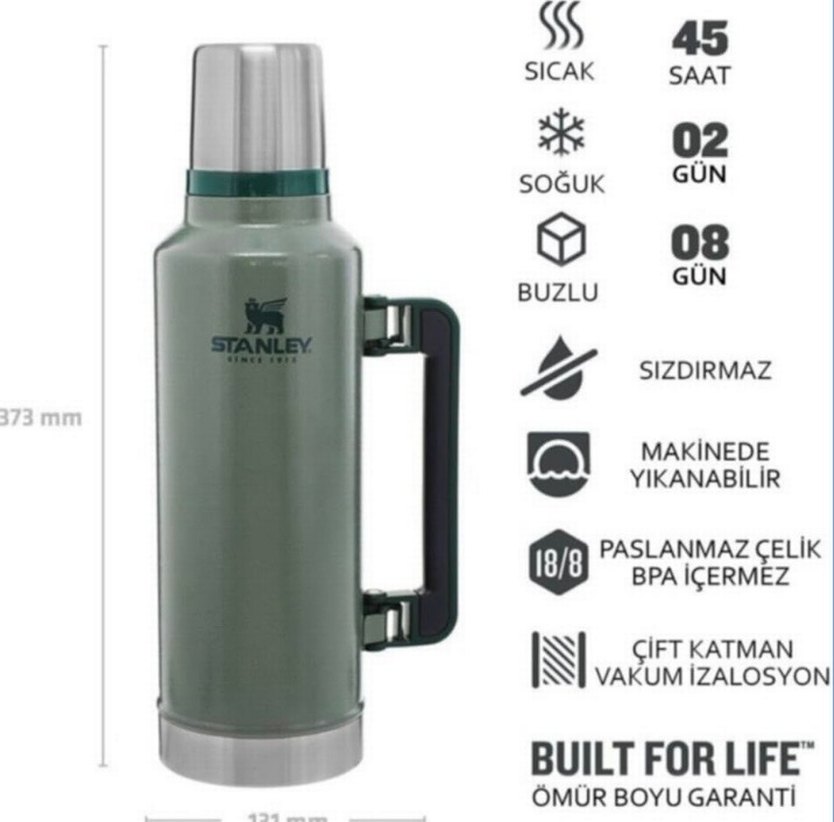 Dünyada Tek Ömür boyu Garantili Stanley 1.9 litre vakumlu paslanmaz çelik termos, *45 saat sıcak *2 gün soğuk *8 gün buzlu *Çift kat izalasyon *Makinede yıkanabilir *uzun süre sıcak veya soğuk tutar , Asla koku yapmaz Ateşten soğuktan sıcaktan etkilnemez Son Adetler ! Orjinal piyasa değeri sitesinde 3.599₺