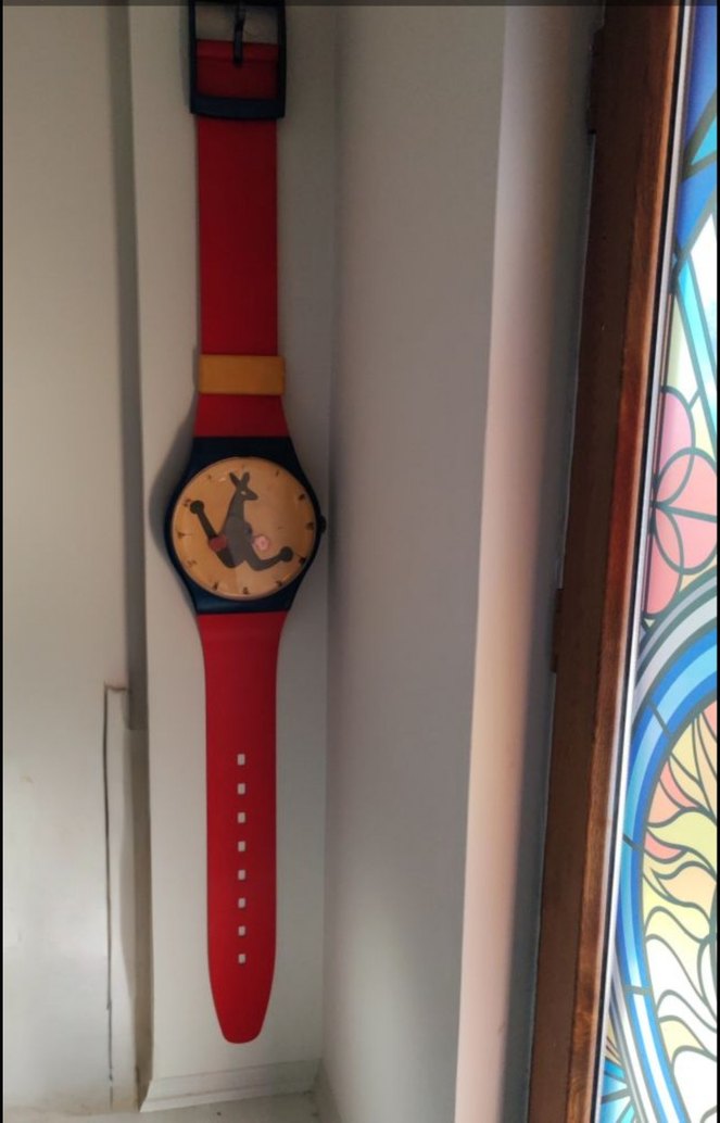 swatch markasının artık üretimde olmayan dev boyutta koleksiyonerlik duvar saati boyut 2 metre uzunluk 30 santim en hiçbir sıkıntısı yok tertemiz çalışır durumda yurt dışında koleksiyon sayfalarında satılan bir ürün.camında rahat okunması için gazlı kalemle işaretlenmiştir.