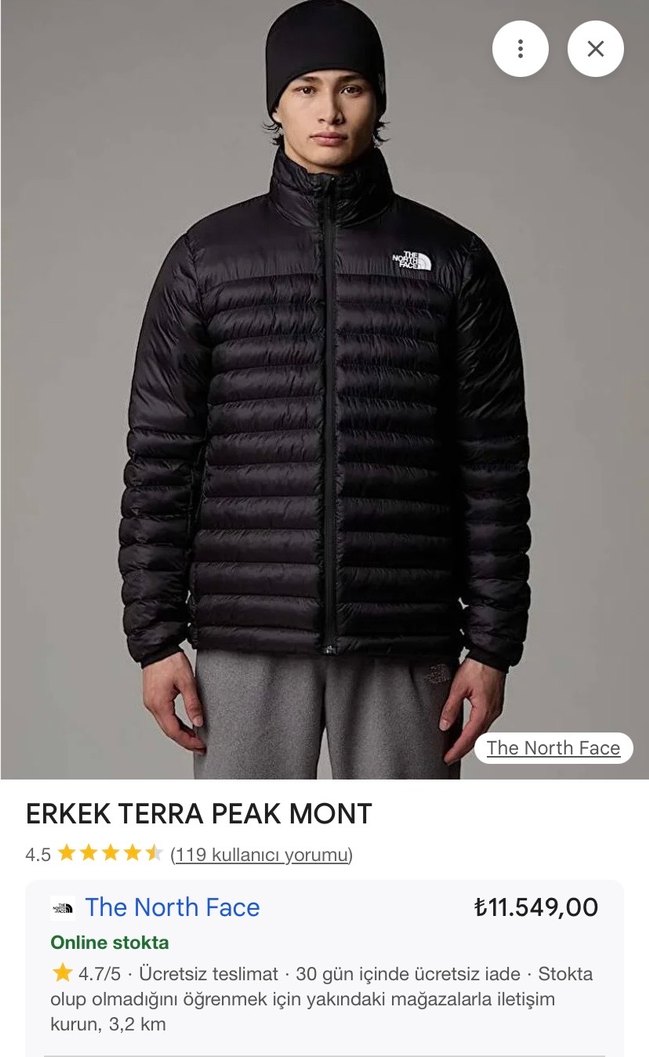 Orjinal The North Face Erkek Terra Peak Siyah Mont