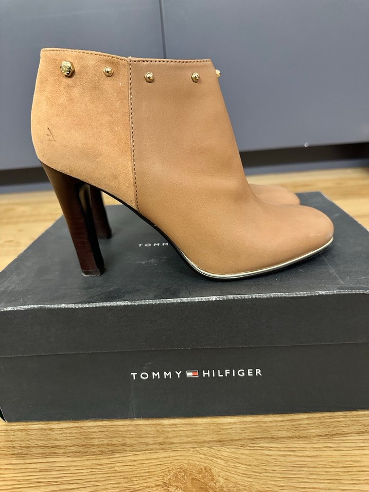 Orjinal Tommy Hilfiger Bej Süet Topuklu Kadın Bot