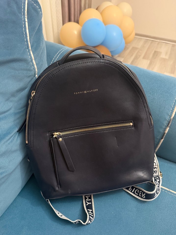 Orjinal Tommy Hilfiger Deri Sırt Çantası, Kemerli, Lacivert